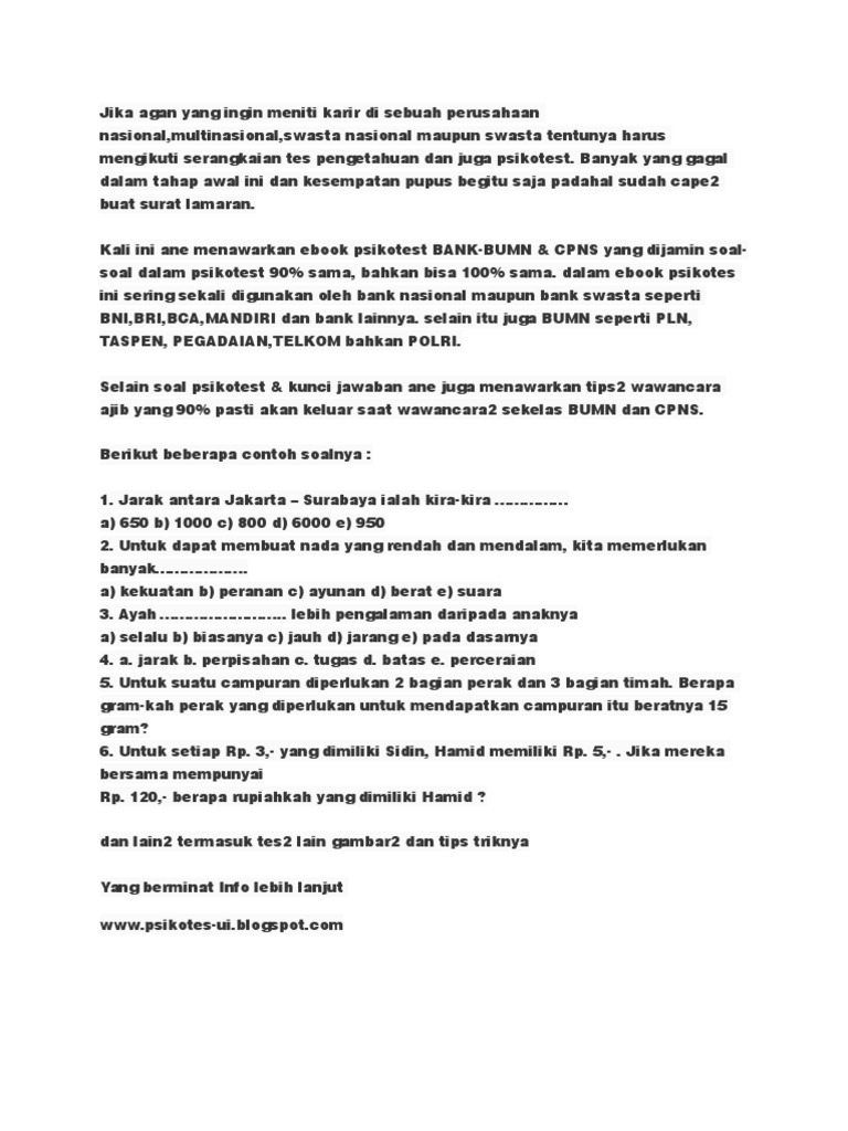 Contoh Soal Psikotes Bank Mandiri Taspen Pos Blog Pendidikan from 4.bp.blogspot.com Dibaca move, bahasa inggris) merupakan anak perusahaan pt bank mandiri (persero) tbk yang bergerak di sektor pembiayaan multiguna untuk melayani masyarakat indonesia dengan cara pembayaran secara cicilan (angsuran) per bulan. Saat ini pt mandiri utama finance kembali membuka lowongan kerja untuk menempati posisi sebagai berikut Melalui teller bank mandiri atau mandiri mikro cabang. Mandiri utama finance sedang membutuhkan tenaga kerja untuk posisi Selain produk tersebut, mandiri juga memiliki anak perusahaan, yakni muf atau dikenal dengan mandiri utama finance. Pilih penyedia jasa mandiri utama finance. Lowongan kerja yang kalimantana sajikan ini sudah pasti bukan penipuan ya, karena setiap lowongan pekerjaan yang kalimantana adapun dibawah ini adalah posisi pekerjaan dan kualifikasi yang dibutuhkan oleh pt. Pilih mandiri utama finance pada penyedia jasa dan masukkan nomor kontrak.